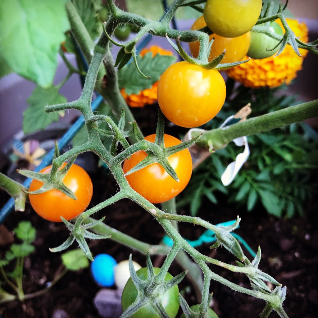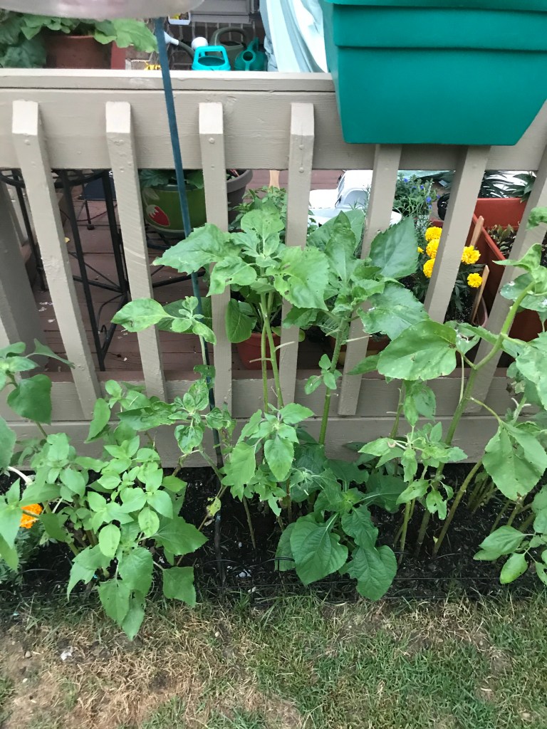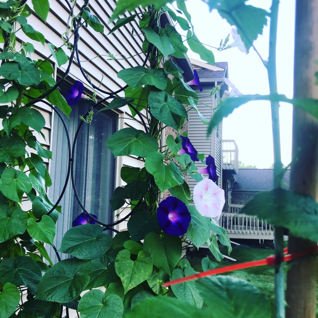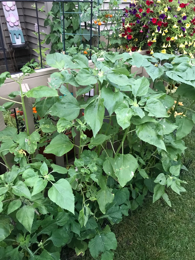 The days of July saw many of the plants growing toward maturity, the gerbera daisies now consistently had big, yellow blooms, the sungolds were coming in small, bright orange and yummy and the morning glories quickly overtook their trellis and formed buds. I also added marigolds and three horseradish plants in an attempt to discourage the chipmunks but while it may work for some they were very persistent.
