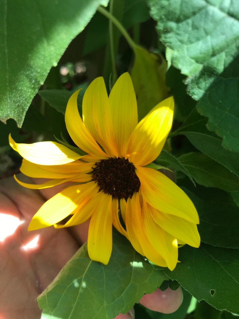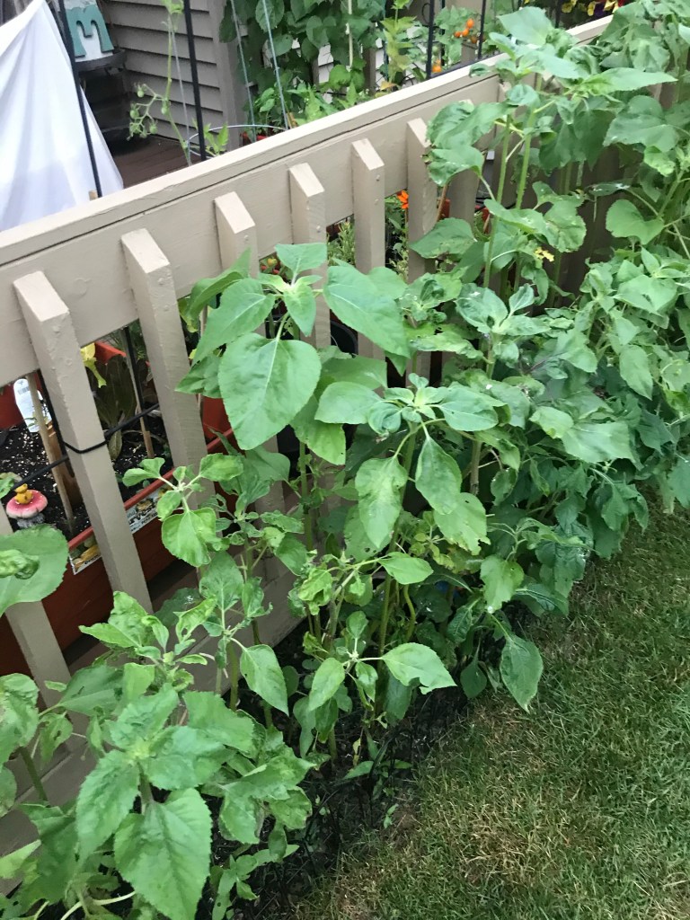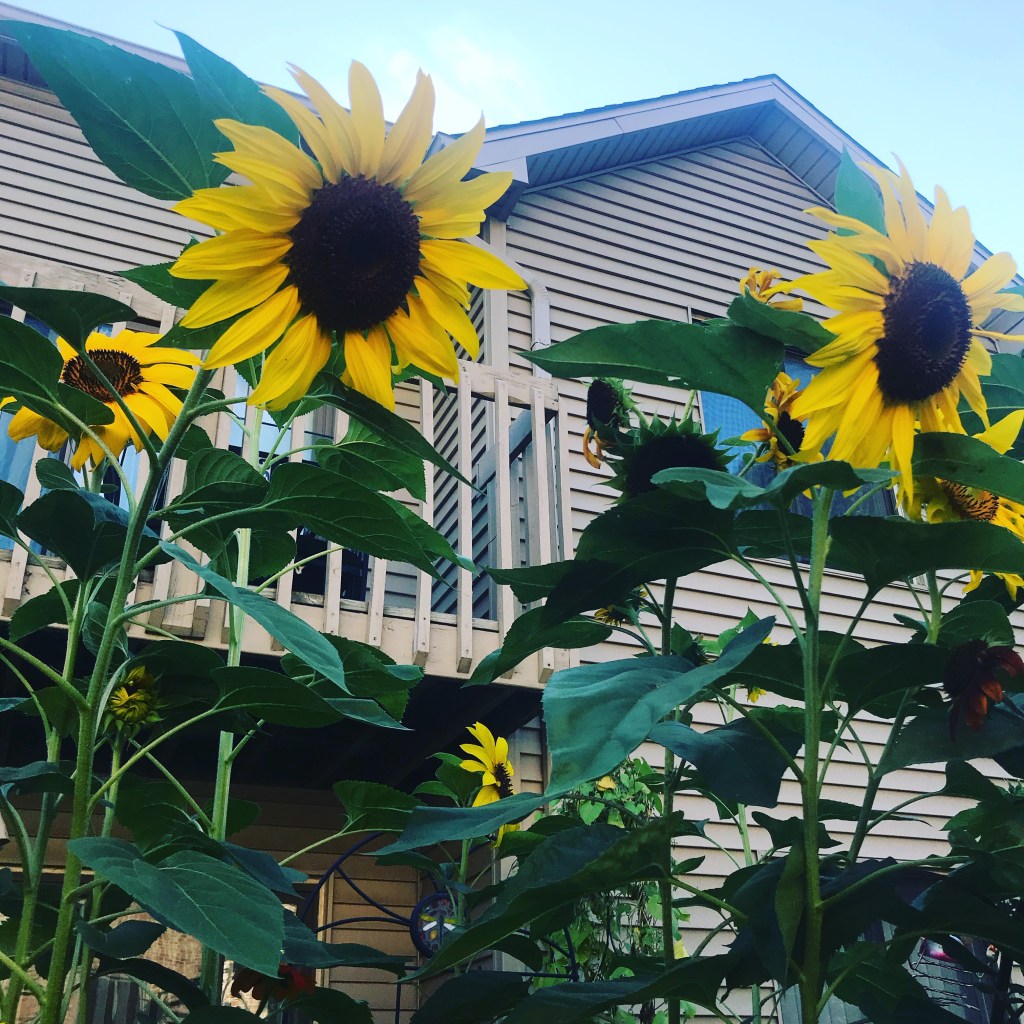 Watching the sunflowers grow was a both satisfying and slightly humorous experience. It was almost like those experiments in grade school where you mix vinegar and baking soda and it overflows everywhere. When planting we intermixed several varieties such as Mammoth and Mexican Sunflowers. The stalks just grew and grew and then, just when we thought it wouldn’t happen, the heads formed.