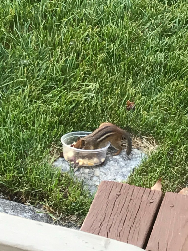 It seemed that the whole garden was growing every day, with a new addition I squeezed in once a week. We found a blackberry plant and three lilies at a farmers market, a pepper plant and a pot of salvia at Lowe’s and I planted a second pot of pansies to add some more color. As the different plants began to develop I noticed that there were small holes at the base of certain things like my chives, one of the tomato plants and in one of the large planter boxes. It would seem our garden had a visitor.