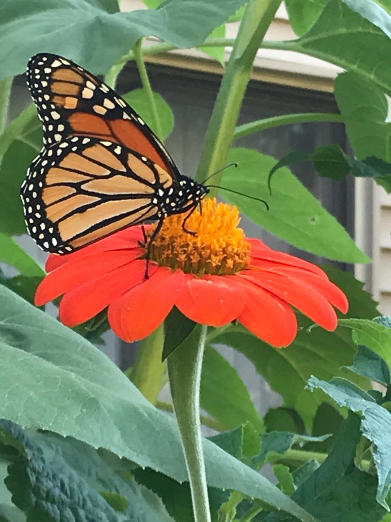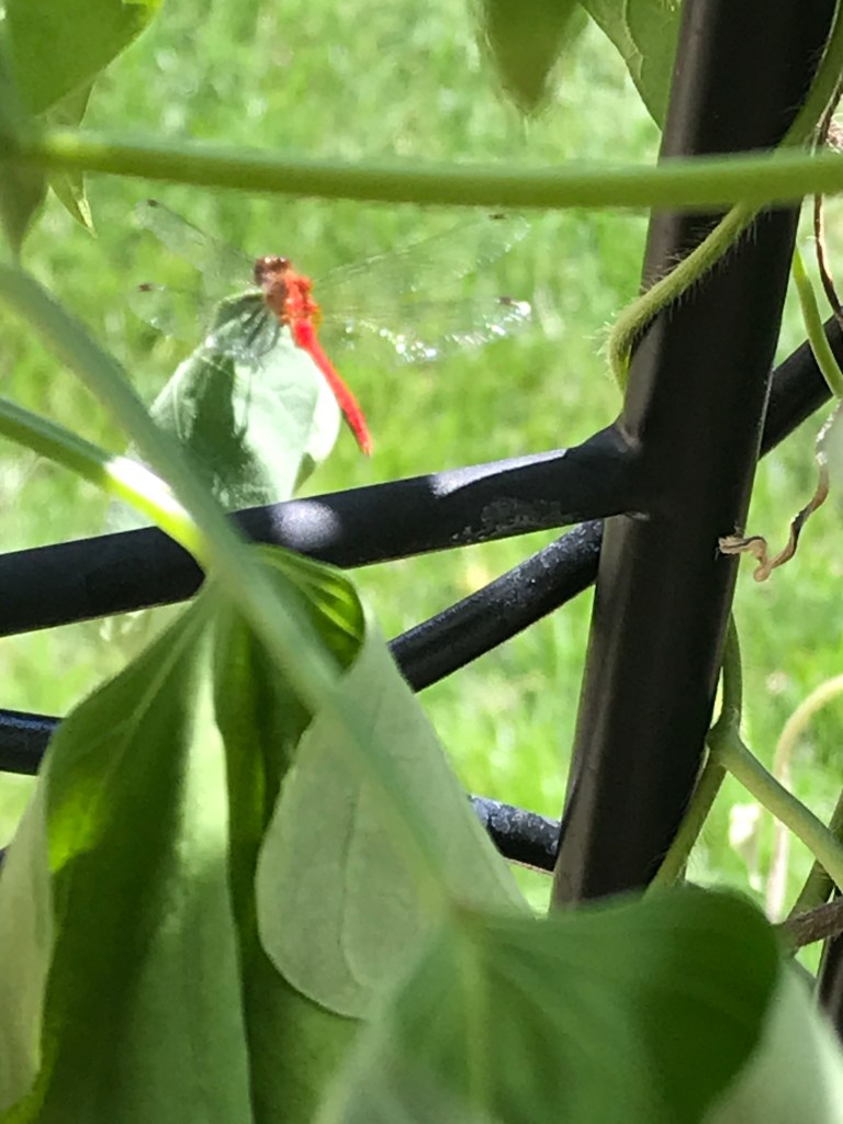 Whenever we start something as a beginner there is bound to be instances of setbacks or things that don’t turn out quite like we’d hope. This was definitely true with my garden, as I watched both types of peas, my beets and my eggplants either stop growing at a certain point or in the case of the peas the leaves turned yellow and the whole plant slowly died. As spots opened up I replaced what had been with something new, again with mixed results. Gone were the peas to be replaced in one box with a second planting and in the other box with cucumber plants, storm burst verbena, zinnia and anise hyssop. As the days went by the number of bumblebees and dragonflies multiplied and we received daily visits from rufous hummingbirds.